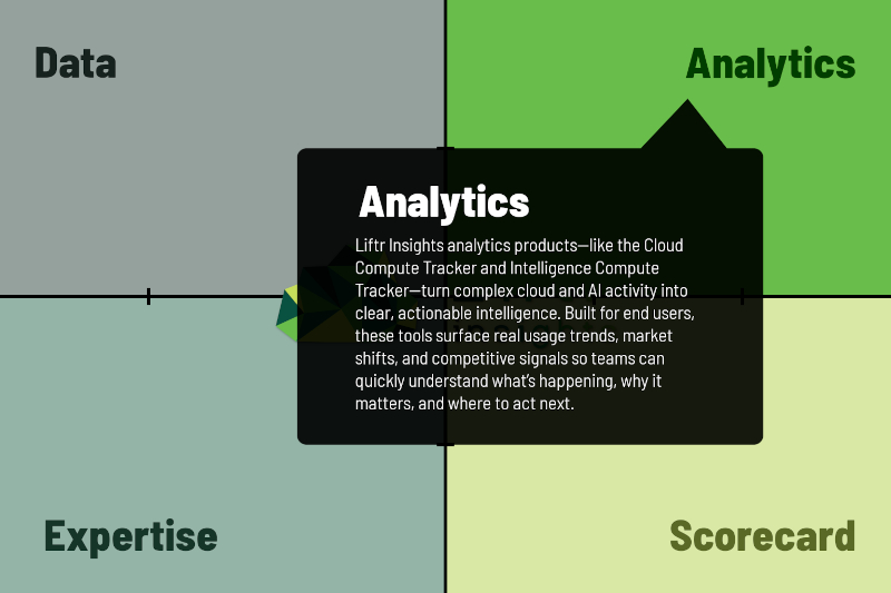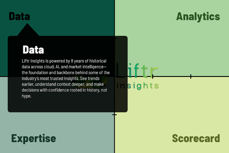 Liftr Insights is powered by 8 years of historical data across cloud, AI, and market intelligence—the foundation and backbone behind some of the industry’s most trusted insights. See trends earlier, understand context deeper, and make decisions with confidence rooted in history, not hype.
